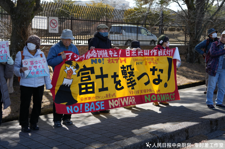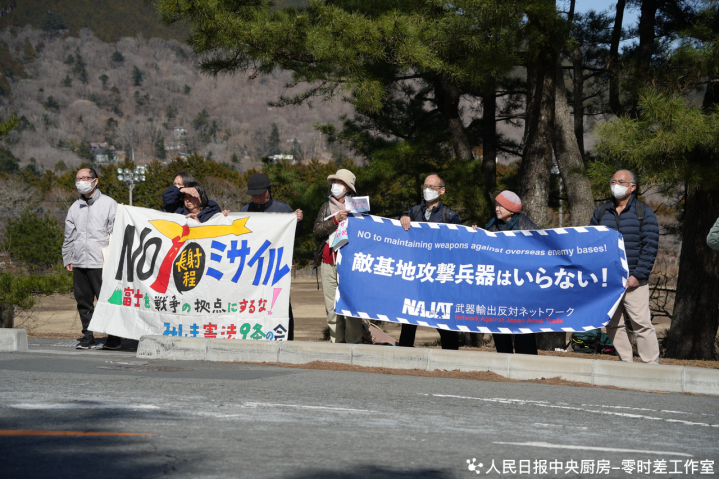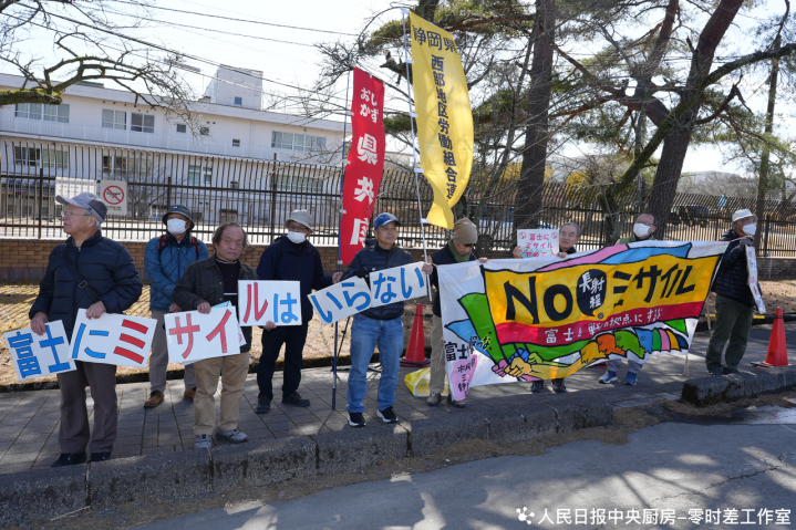 3月14日,日本大众在位于静冈县的陆上自保队富士驻屯地门前举行抗议集合,反对在该地部署良友导弹。东说念主民日报记者刘文璋摄