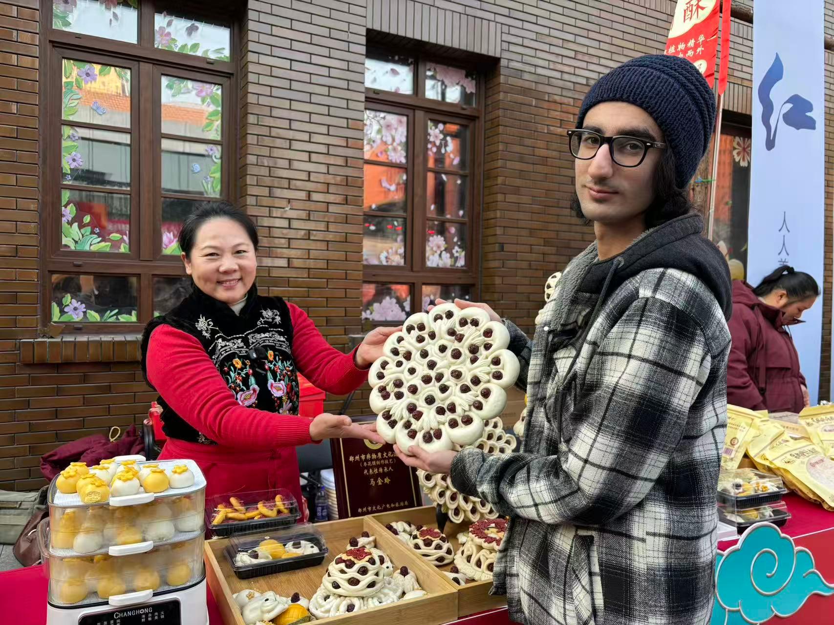 大河网讯 2月8日傍晚,河南省“国潮焕新・四季非遗购物月”首场作为“豫见非遗・寻味中国年”在郑州阜民里文化街区拉开帷幕。青砖灰瓦的街区中,40余个可出动非遗展位有序排开。来自郑州轻工业大学的伊朗籍留学生周瑜(Kianimehr Kian)穿梭其间,千里浸式体验枣花馍、浚县泥咕咕等华夏非遗武艺,在传统与潮水的碰撞中解锁中国年的私有魔力。
