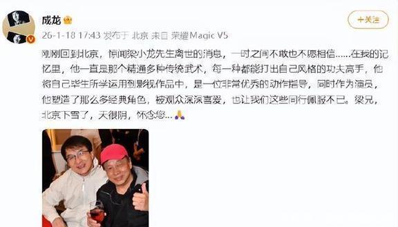梁小龙的赔本让家东谈主一又友伤心不已,就连他的粉丝们也心里难以安心,过了好久齐放不下。