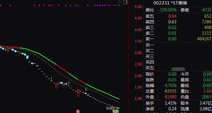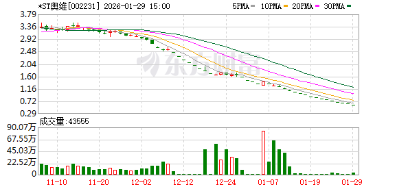 市集层面,2025年下半年以来,*ST奥维股价抓续低迷,屡次出现纠合跌停走势。数据显现,自2025年10月起,公司股价冉冉跌破3元,12月以来纠合多日跌停。死心2026年1月29日,该公司股价报收0.6元/股,总市值仅余2.08亿元,远低于5亿元的监管红线。