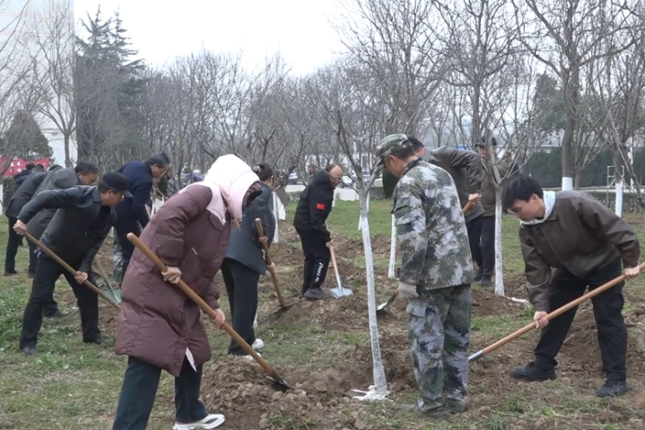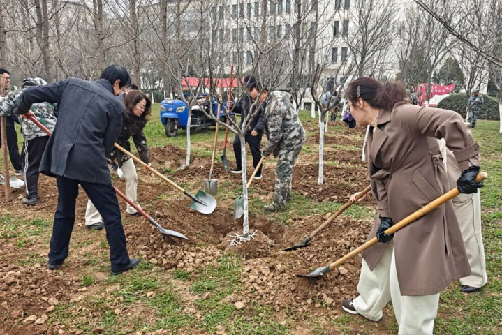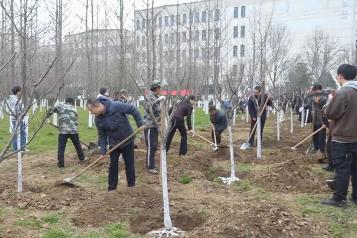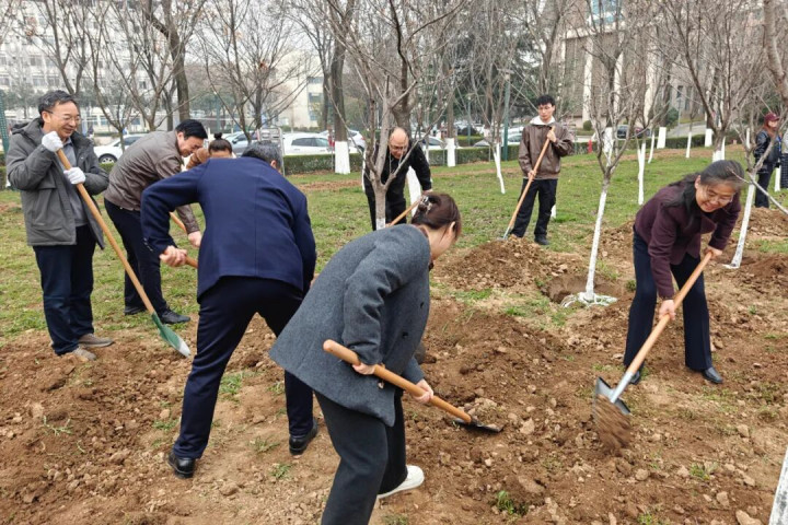 植树现场,100余名机关干部员工三五成组、单干和谐,挥锹铲土、扶苗填坑、踏土夯苗、浇水灌溉……各个形式连续有序,配合分解,一分彩app官方下载劲头满盈,呈现出一片繁荣兴旺的步地。不一霎,一棵棵新栽的樱花树苗顶风挺立,为初春校园增添了新的活力。