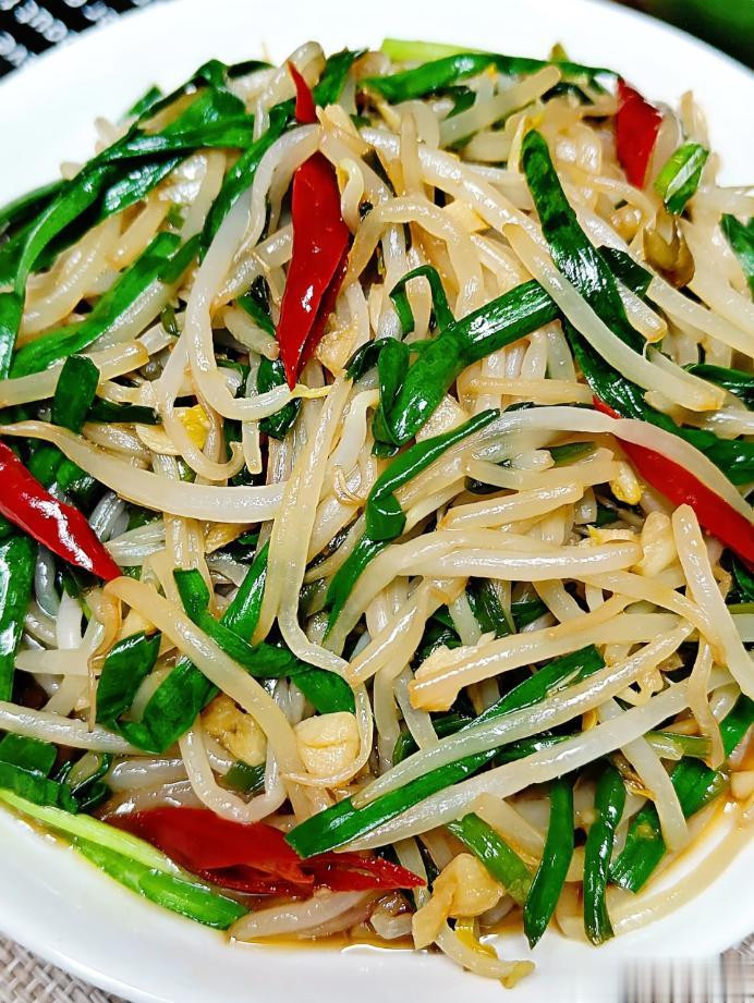 1.韭菜炒芽菜——养肝通气的“小妙手”
