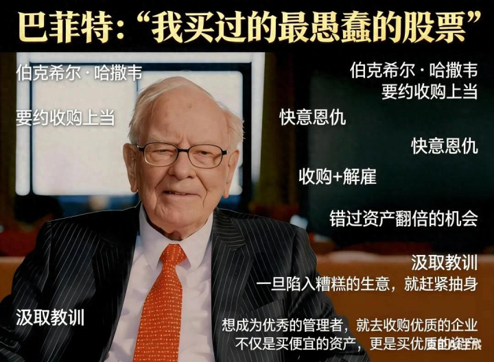 “要是当初没跳进纺织业这个天坑,而是平直从保障公司起步,当今伯克希尔的市值能再翻一倍,多赚2000亿好意思元!”,股神频繁拿起这事就直拍大腿。